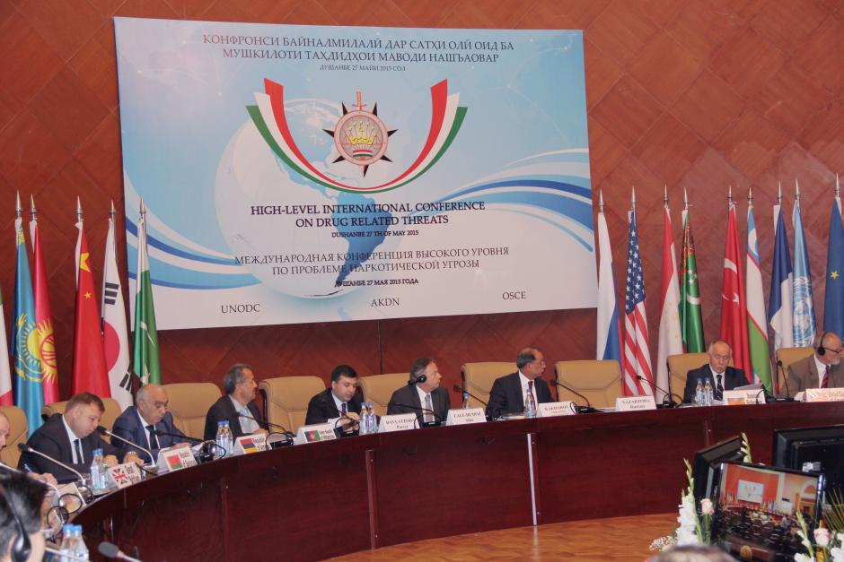 High-level participants at an international conference on drug-related crimes, Dushanbe, 27 May 2015.