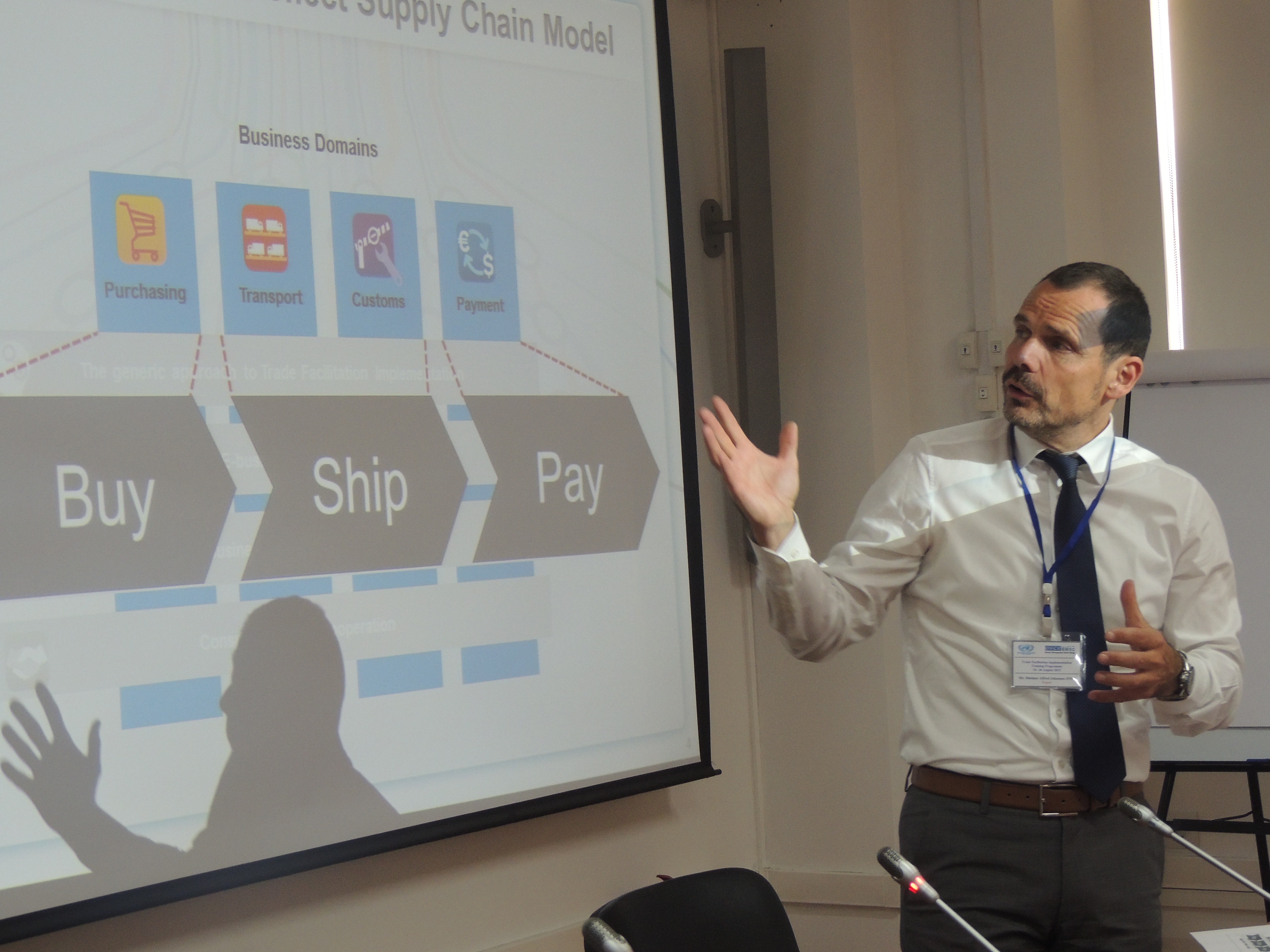 Dietmar Jost, expert from Germany, during a three-day workshop on trade facilitation instruments and challenges, Dushanbe, 24 August 2015.