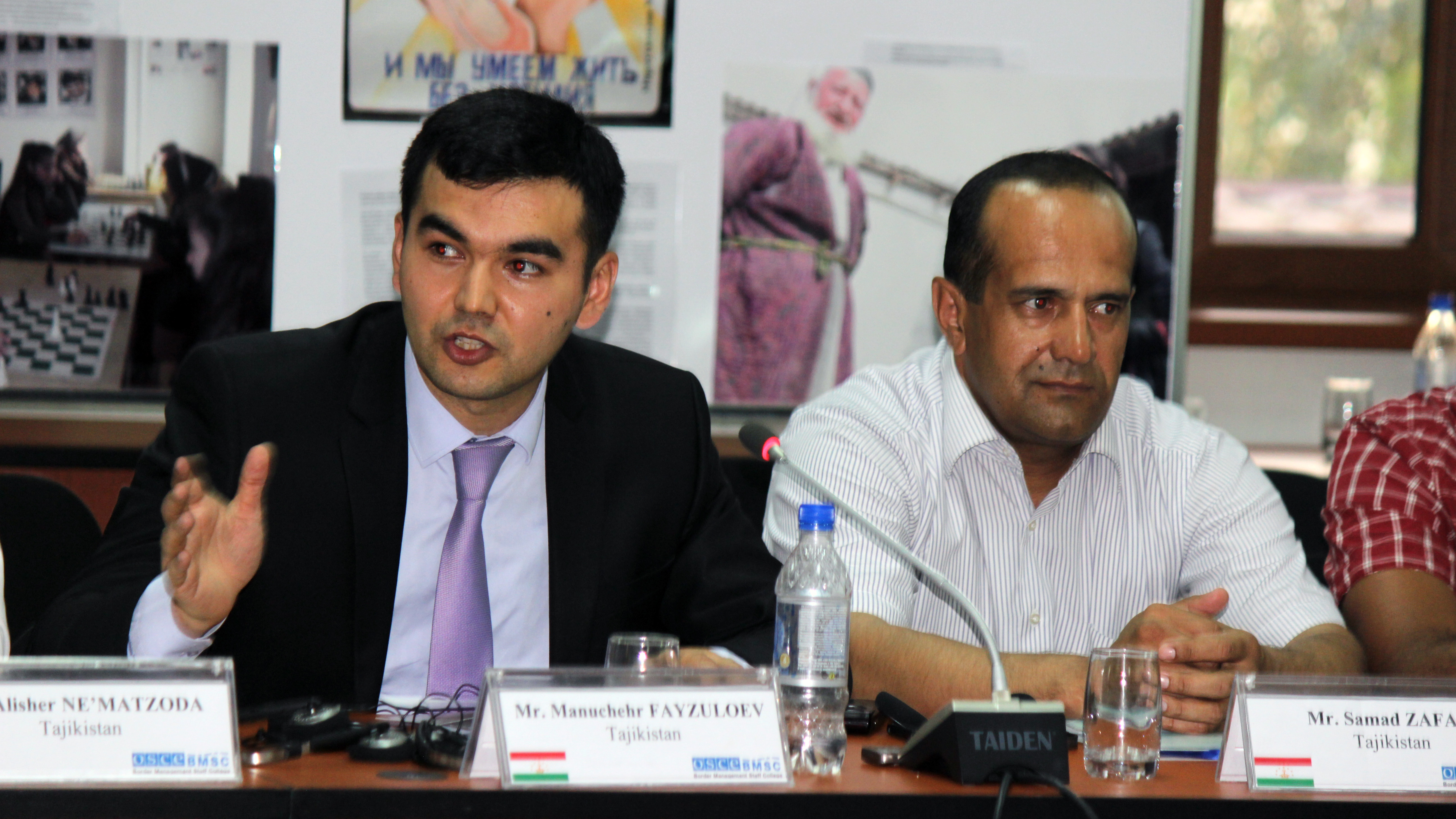 Manuchehr Fayzulloev, Head of the Territorial and Border Settlement Division at the Ministry of Foreign Affairs of Tajikistan, participates in a discussion on implementation of the national border strategy, 8 September 2015, Dushanbe.