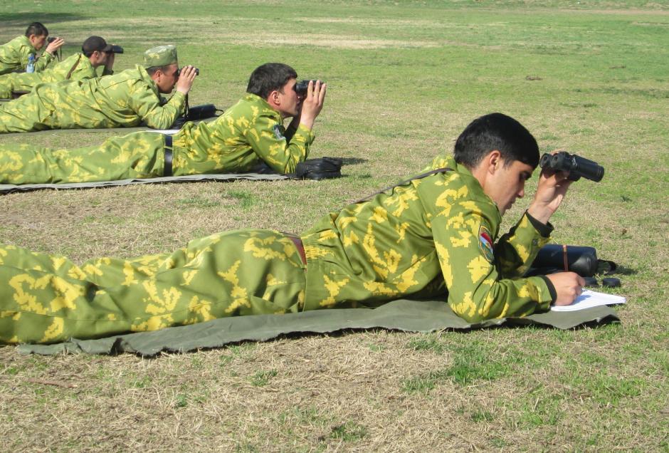 Tajik Border Troops conduct an observation exercise at the Gissar Training Center during patrolling and leadership training course, Gissar, 4 March 2016.
