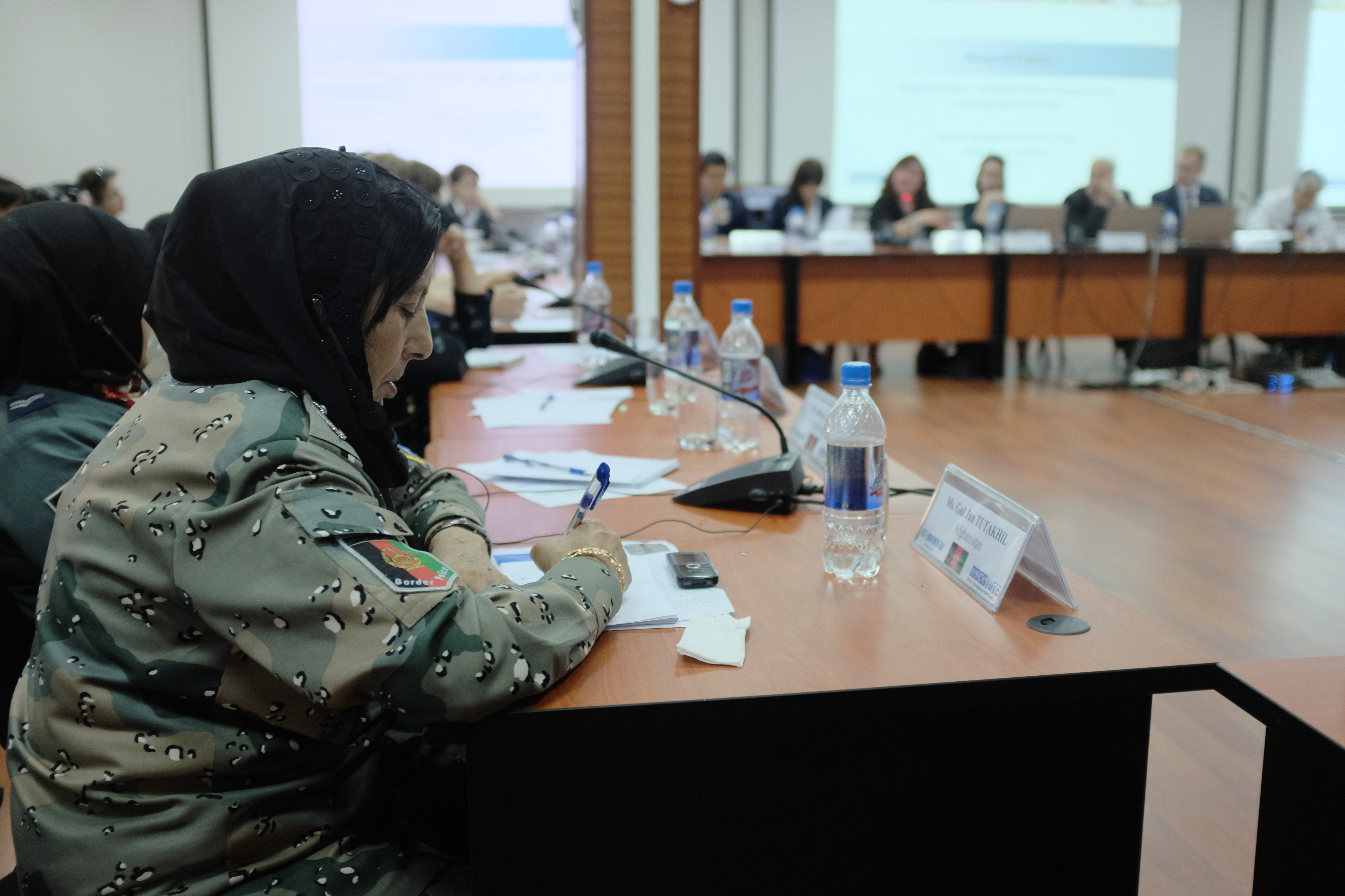 Afghan female border officials participating in an OSCE Border Management Staff College’s roundtable discussion on the situation in and around Afghanistan, 16 May 2016.