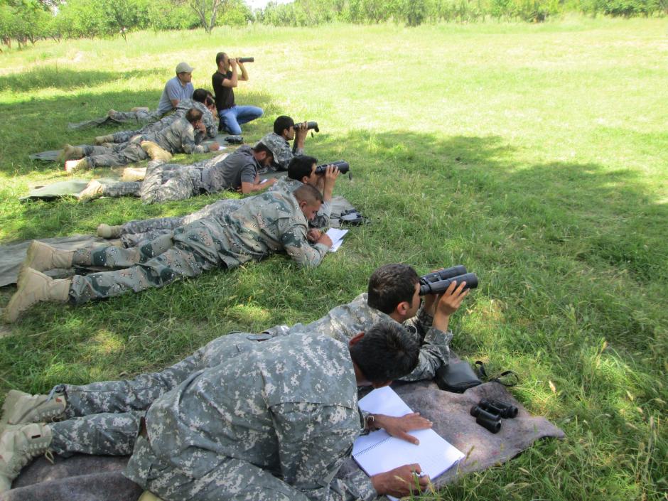 Afghan border police students during an observation exercise at the Gissar training centre, Tajikistan, 25 May 2016.