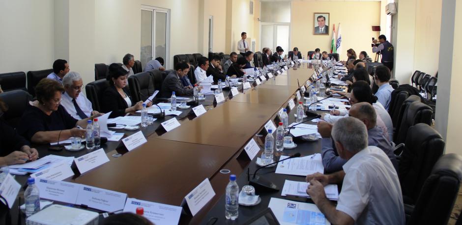 Participants during a high-level dialogue on countering trafficking in human beings held at Khujand, 16 September 2016.