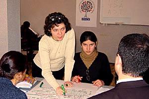 Representatives of non-governmental and international organizations discussing prison reform with Tajik government officials in Dushanbe, 13 February 2004.