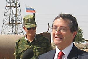 Ambassador Yves Bargain, Head of the OSCE Centre in Dushanbe, at a ceremony to hand over land cleared of mines to a community in Tajikistan, 14 September 2004.