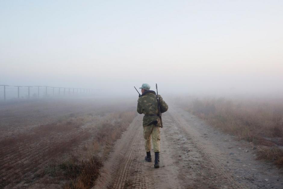 A trooper patrolling along the Afghan-Tajik border.