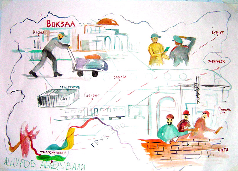 A drawing that participated in the contest "Labour migration through my eyes," held in the Tajik city of Khujand to mark International Migrants Day, 18 December 2007.