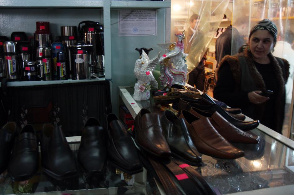 Shoes on sale in a department store in Dushanbe, 28 February 2008.