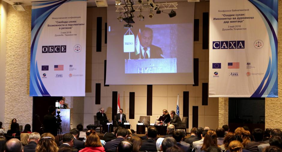 Хабарнигорони Тоҷикистон, Узбекистон, Қирғизистон, Қазоқистон ва Русия дар конфронси байналмилалии “Озодии сухан: имкониятҳо ва дурнамоҳо дар минтақа”, ки 3 май дар Душанбе барои таҷлили Рӯзи умумиҷаҳонии озодии матбуот баргузор гардид, ширкат варзиданд.