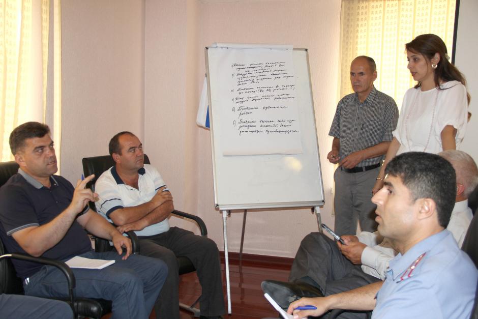 Иштирокчиён ҳангоми кор дар гурӯҳ дар курси омӯзишӣ оид ба Протоколи Истамбул, Бохтар, 10 июли соли 2019.