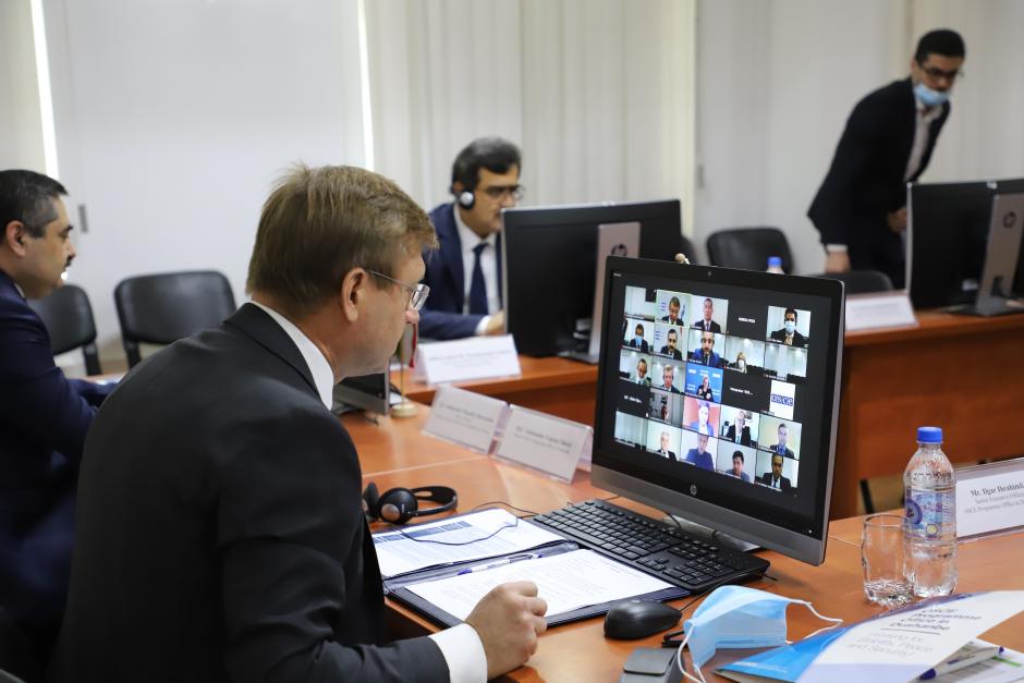 Роҳбари Дафтари барномаҳои САҲА дар Душанбе Валериу Кивер ҳангоми баромад тариқи онлайн дар ҷаласаи солонаи Платформаи Шарикӣ, шаҳри Душанбе, 15 октябри 2020