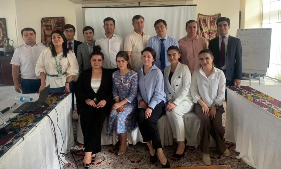 Намояндагони вазорату идораҳои гуногун зимни аксбардории гурӯҳӣ дар курси дурӯзаи таълимӣ оид ба асосҳои савдо ва логистикаи байналмилалӣ, Душанбе, 14 сентябри соли 2024.