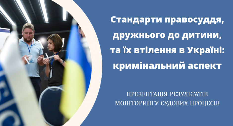 Багаторазові допити, відсутність психологічної допомоги та підтримки, тривалі судові розгляди - це лише декілька проблем, з якими стикаються діти у кримінальному процесі в Україні відповідно до результатів дослідження, проведеного за підтримки ОБСЄ та презентованого 1 червня 2021 року. Звіт містить результати дослідження та моніторингу судових процесів, здійсненого громадянським суспільством на запит Уповноваженого Верховної Ради України з прав людини та за підтримки Координатора проектів ОБСЄ в Україні.