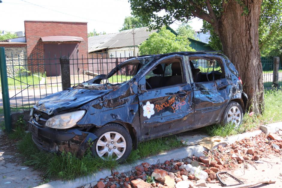 Залишки автомобіля, що використовувався в освітньому проєкті та був пошкоджений уламками від вибуху поблизу школи №21.