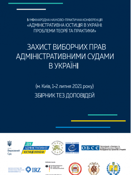 Збірник тез надрукований за матеріалами ІV Міжнародної науково-практичної конференції «Адміністративна юстиція в Україні: проблеми теорії та практики», присвяченої проблемам захисту виборчих прав адміністративними судами в Україні. Висвітлено сучасні тенденції судової практики щодо розгляду виборчих спорів у контексті міжнародно визнаних виборчих стандартів та правових позицій Європейського суду з прав людини. Видання розраховане на суддів, правників та усіх, хто цікавиться відповідною проблематикою. Конференцію було проведено 1-2 липня 2021 року.