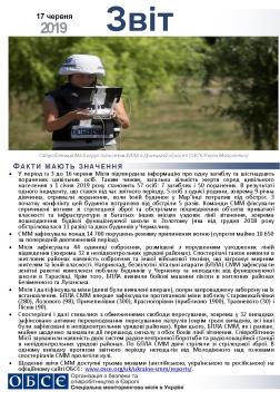 Цей звіт містить загальний огляд діяльності Спеціальної моніторингової місії в Україні, останні новини та події станом на 17 червня 2019 року.