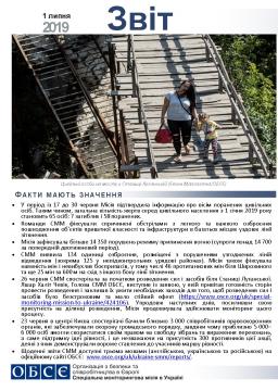 Цей звіт містить загальний огляд діяльності Спеціальної моніторингової місії в Україні, останні новини та події станом на 1 липня 2019 року.