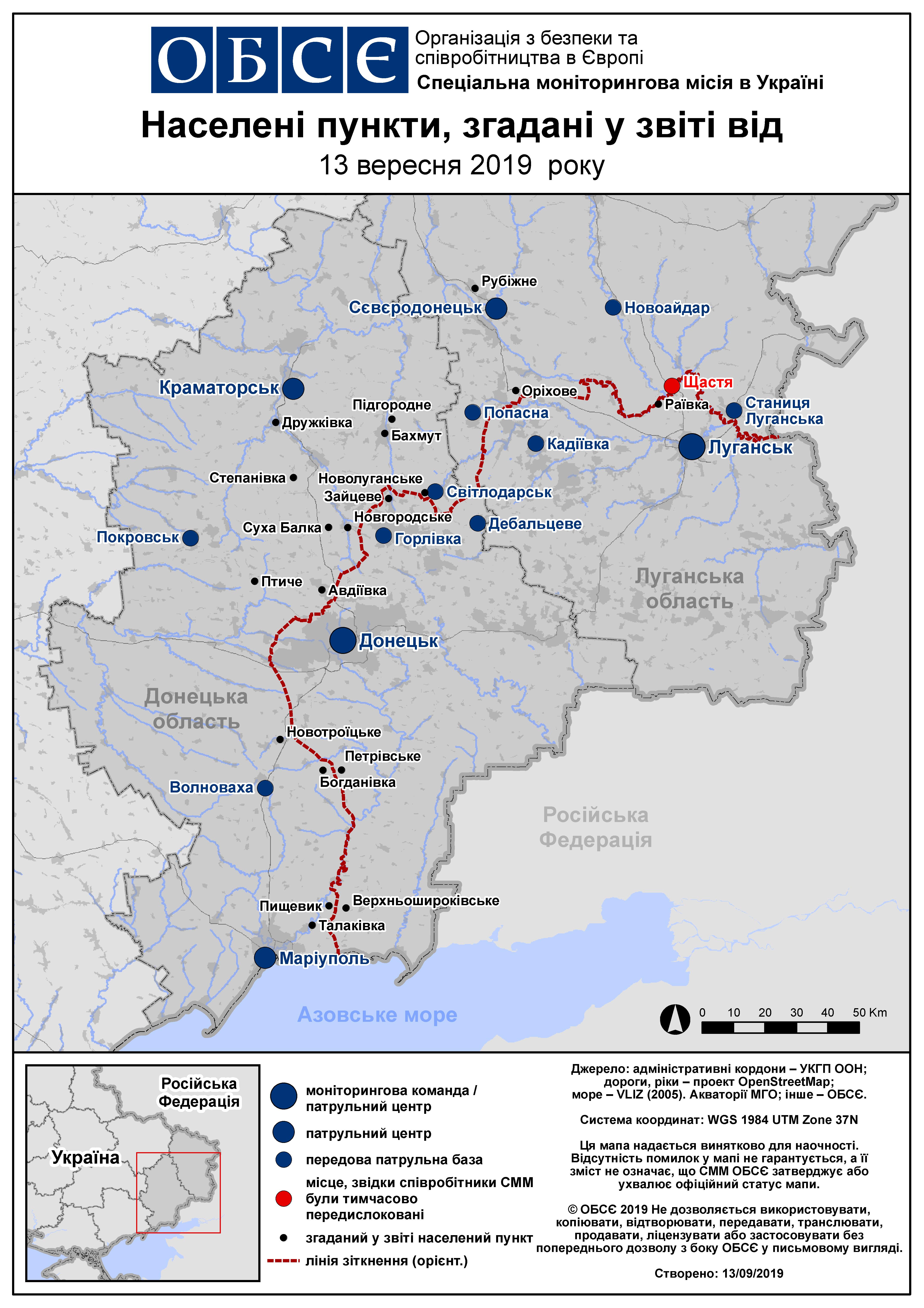 Щоденний звіт № 217/2019, опублікований Спеціальною моніторинговою місією ОБСЄ в Україні (СММ) 13 вересня 2019 року