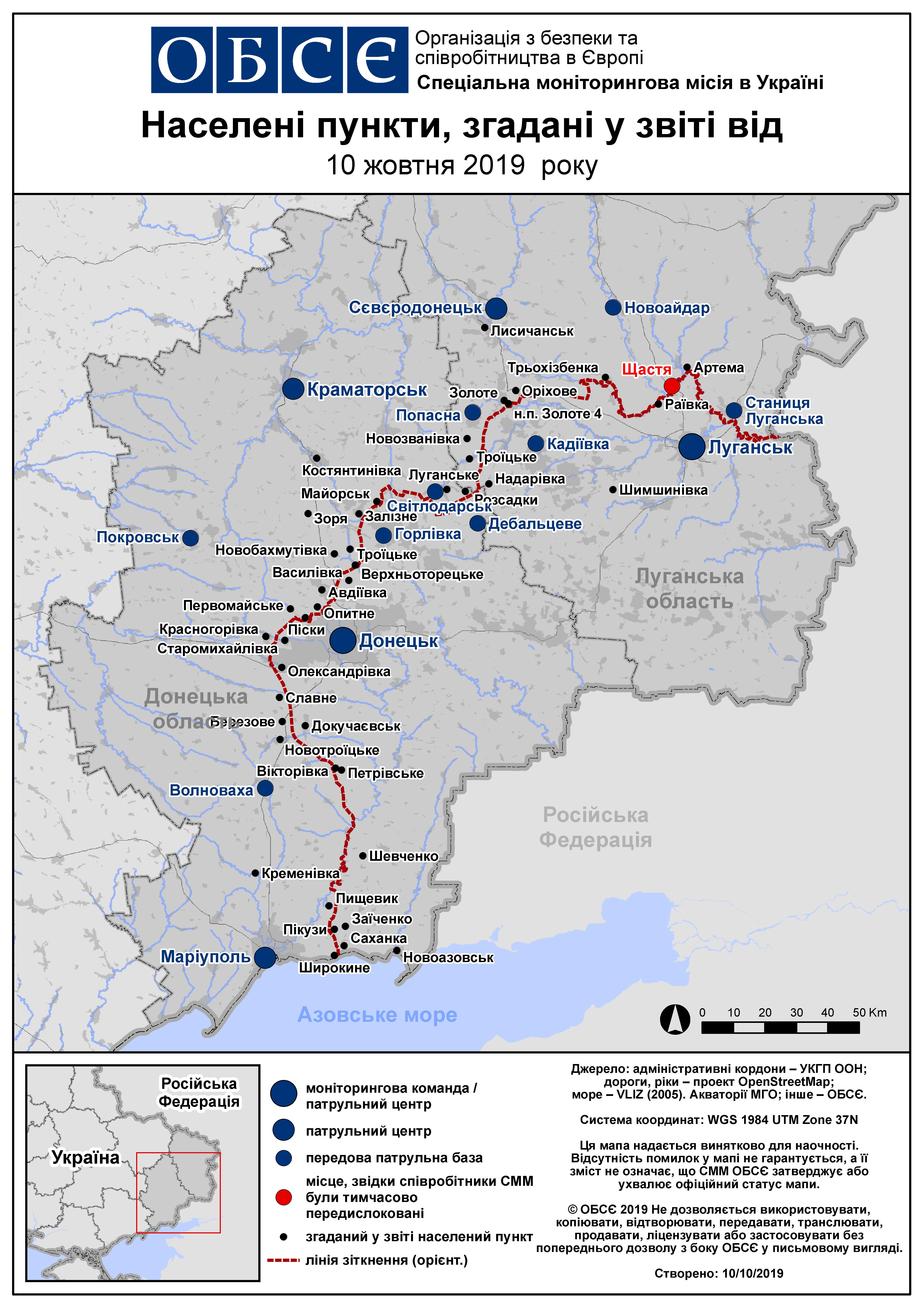 Щоденний звіт № 240/2019, опублікований Спеціальною моніторинговою місією ОБСЄ в Україні (СММ) 10 жовтня 2019 року