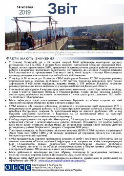 Цей звіт містить загальний огляд діяльності Спеціальної моніторингової місії в Україні, останні новини та події станом на 14 жовтня 2019 року.