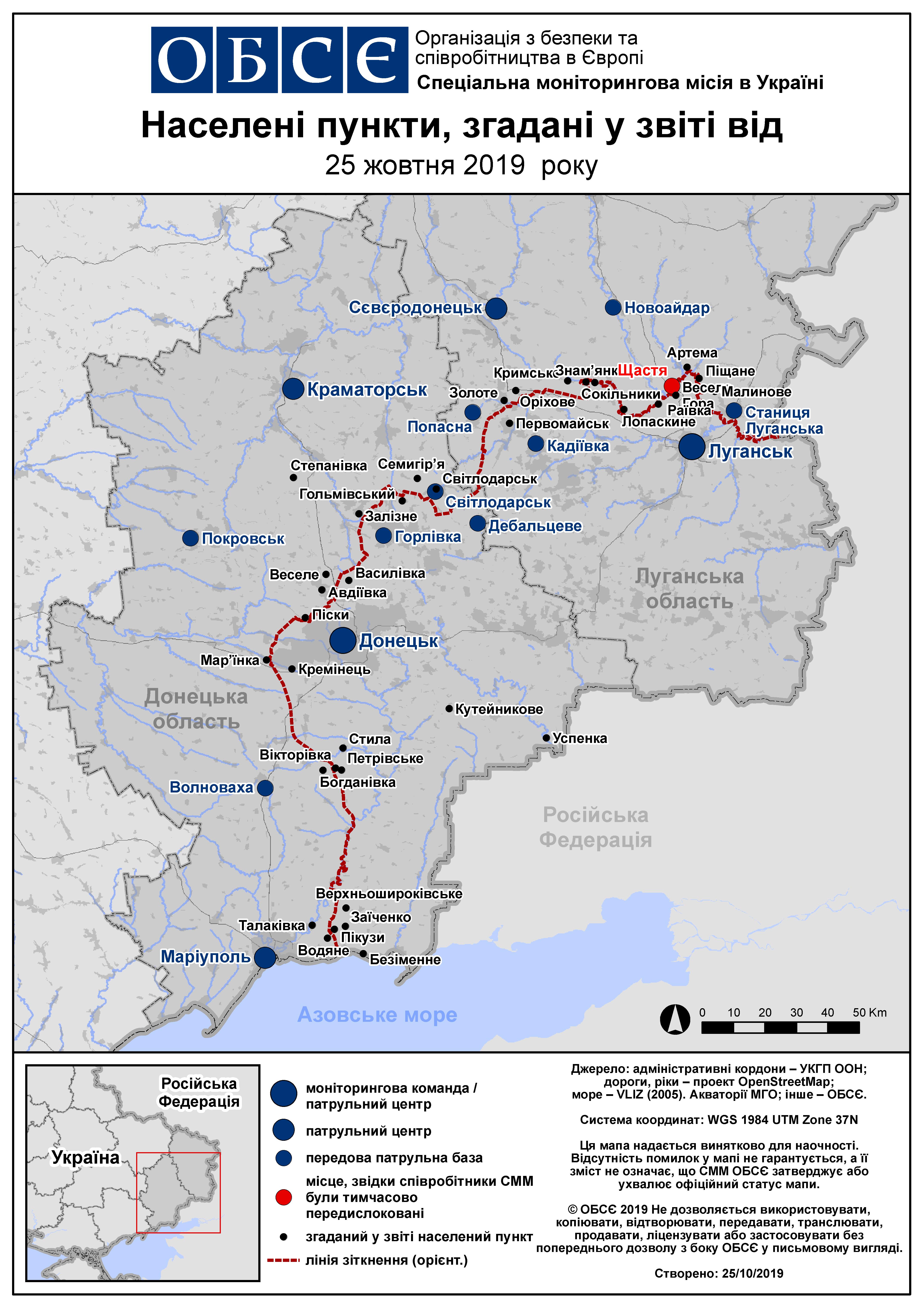 Щоденний звіт № 253/2019, опублікований Спеціальною моніторинговою місією ОБСЄ в Україні (СММ) 25 жовтня 2019 року