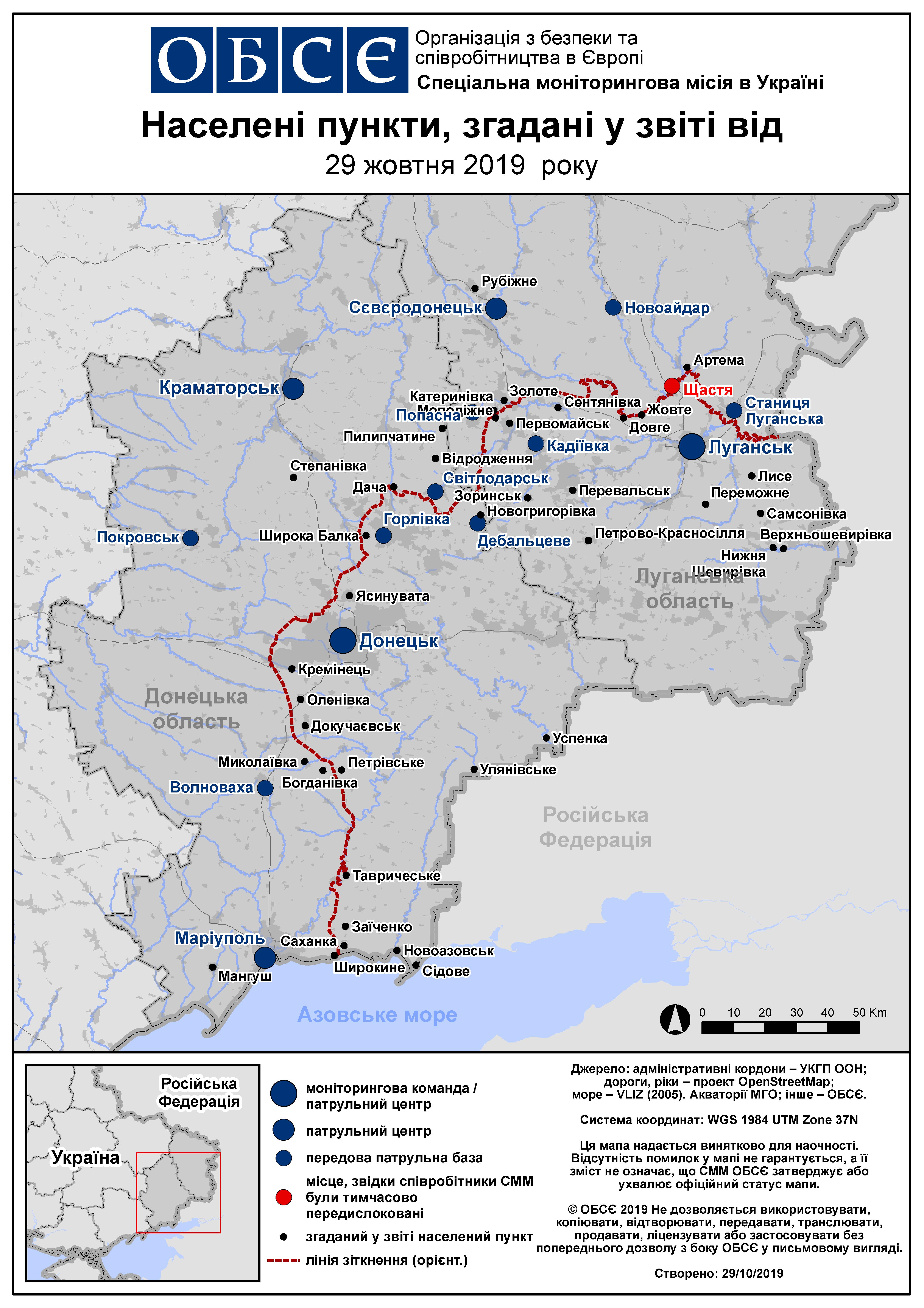 Щоденний звіт № 256/2019, опублікований Спеціальною моніторинговою місією ОБСЄ в Україні (СММ) 29 жовтня 2019 року