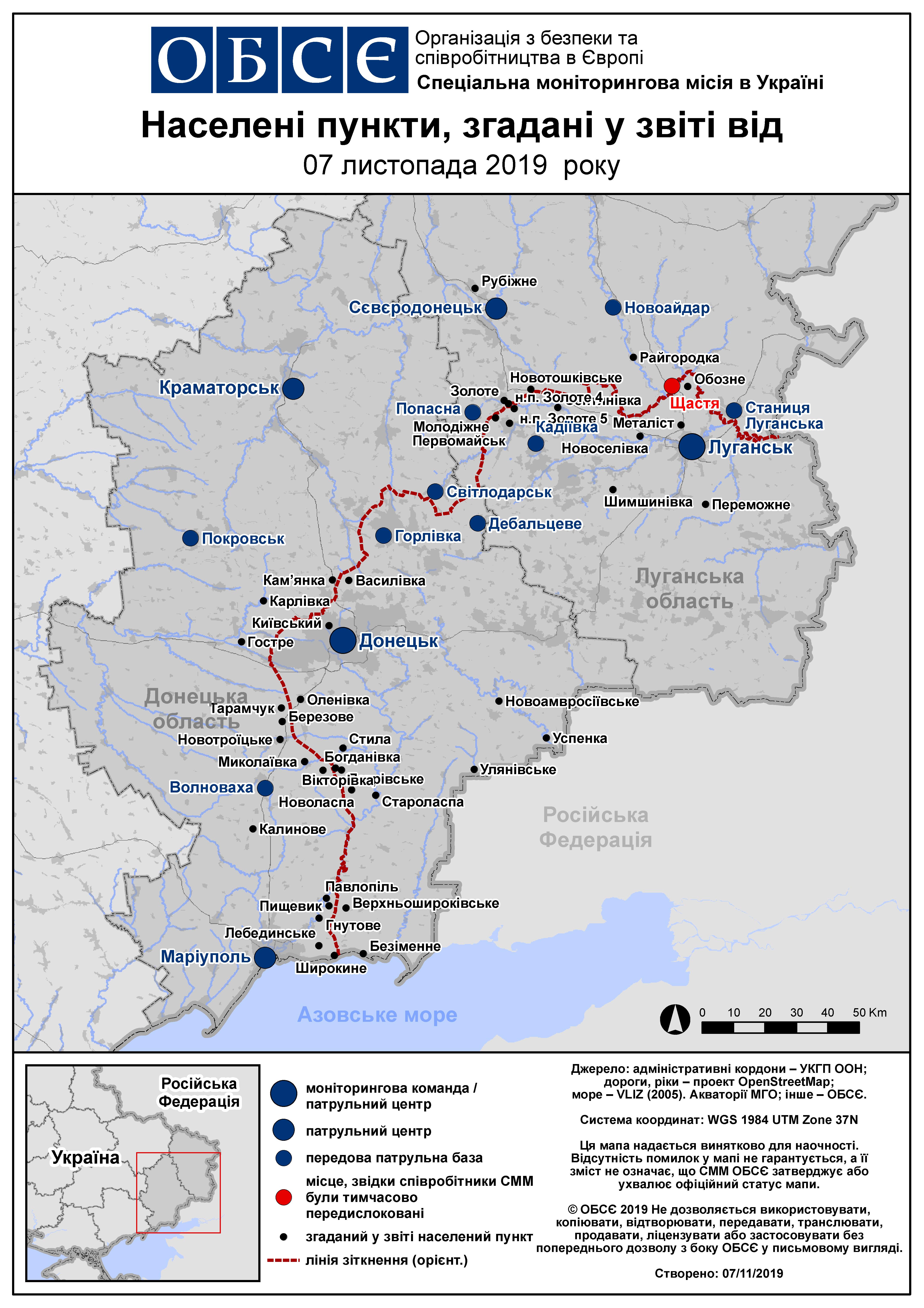 Щоденний звіт № 264/2019, опублікований Спеціальною моніторинговою місією ОБСЄ в Україні (СММ) 7 листопада 2019 року