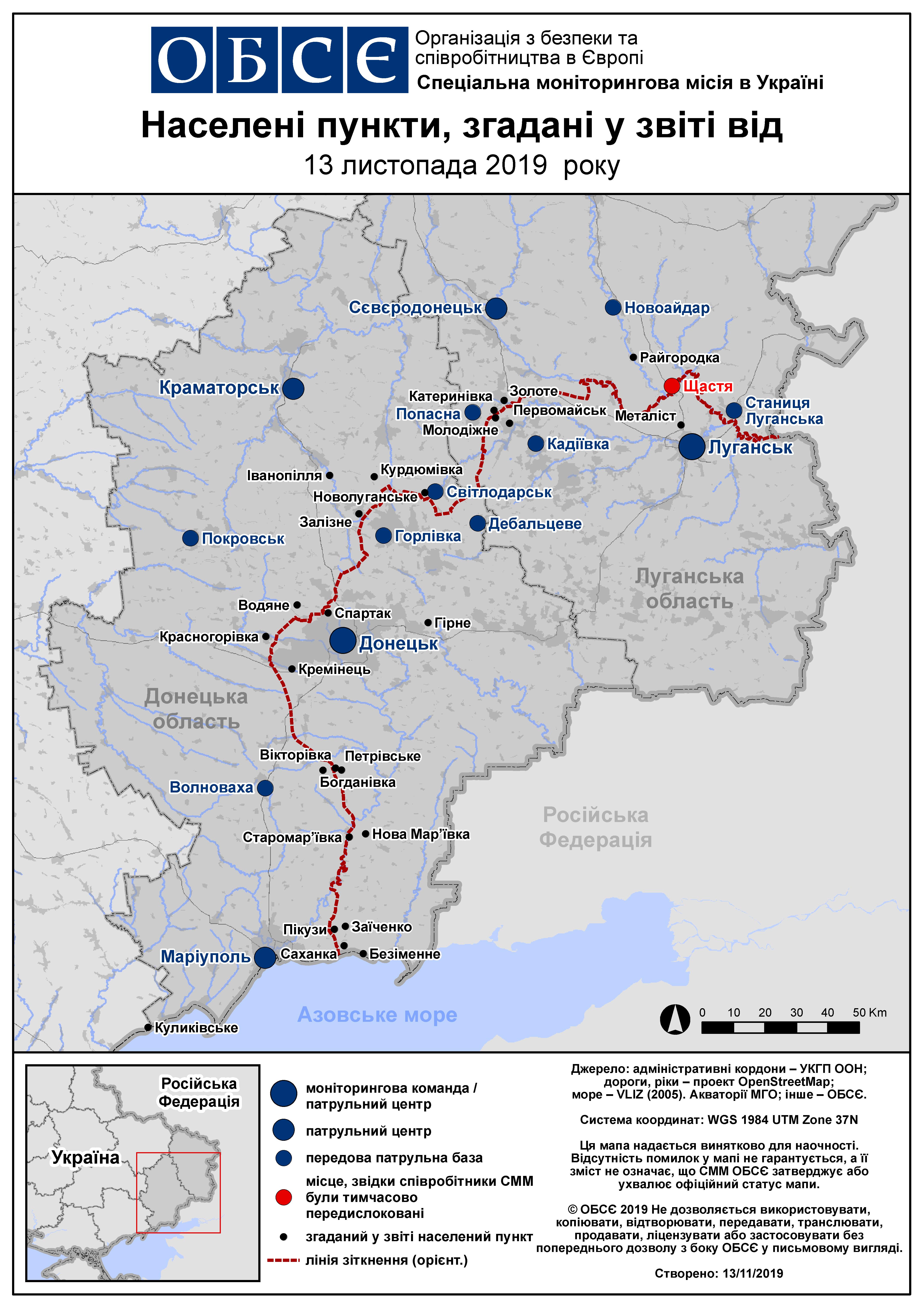 Щоденний звіт № 269/2019, опублікований Спеціальною моніторинговою місією ОБСЄ в Україні (СММ) 13 листопада 2019 року