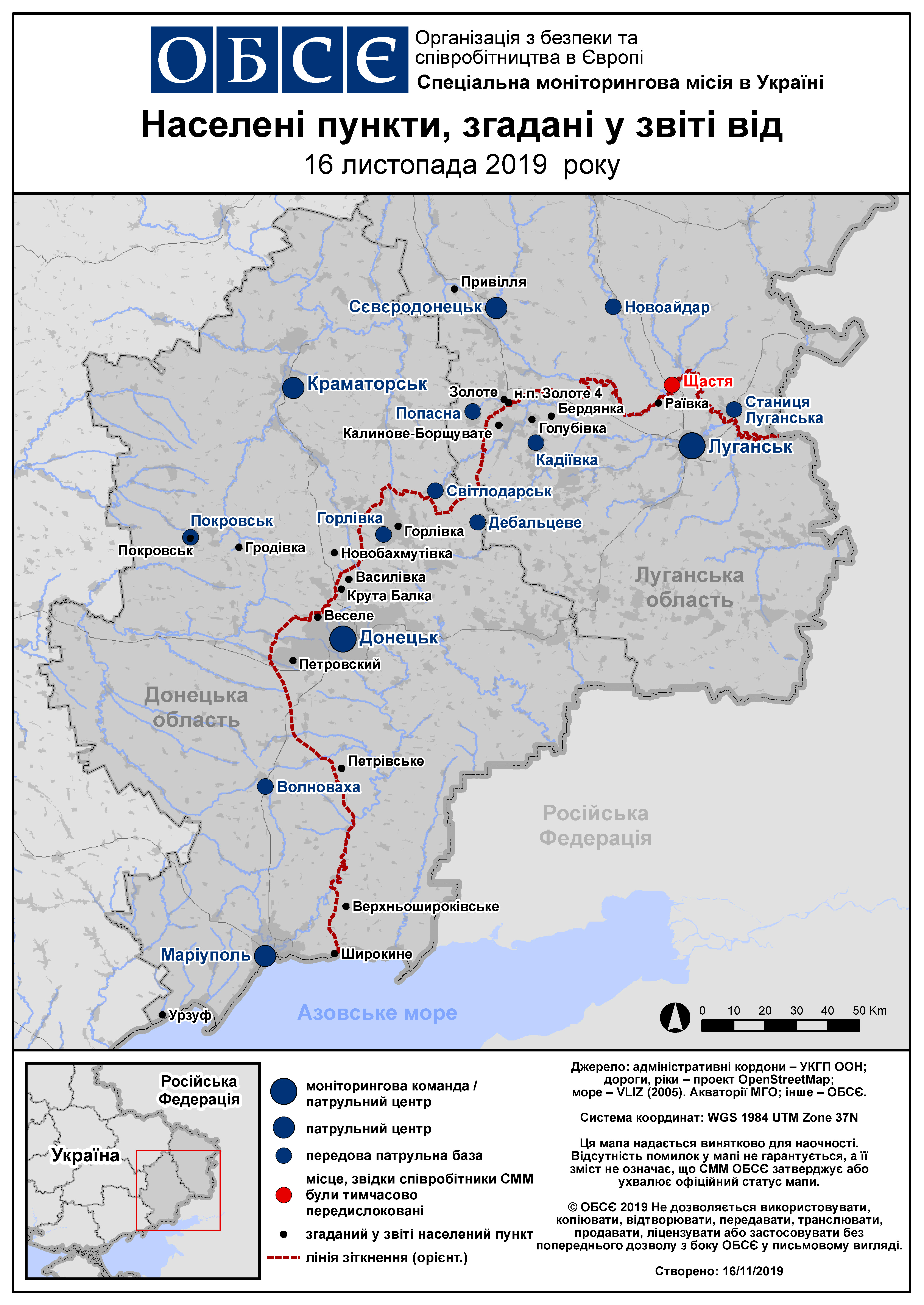 Щоденний звіт № 272/2019, опублікований Спеціальною моніторинговою місією ОБСЄ в Україні (СММ) 16 листопада 2019 року