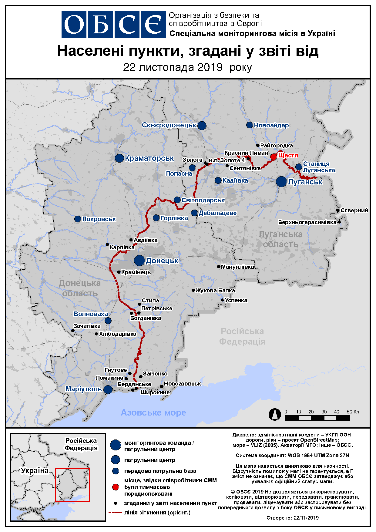 Щоденний звіт № 277/2019, опублікований Спеціальною моніторинговою місією ОБСЄ в Україні (СММ) 22 листопада 2019 року