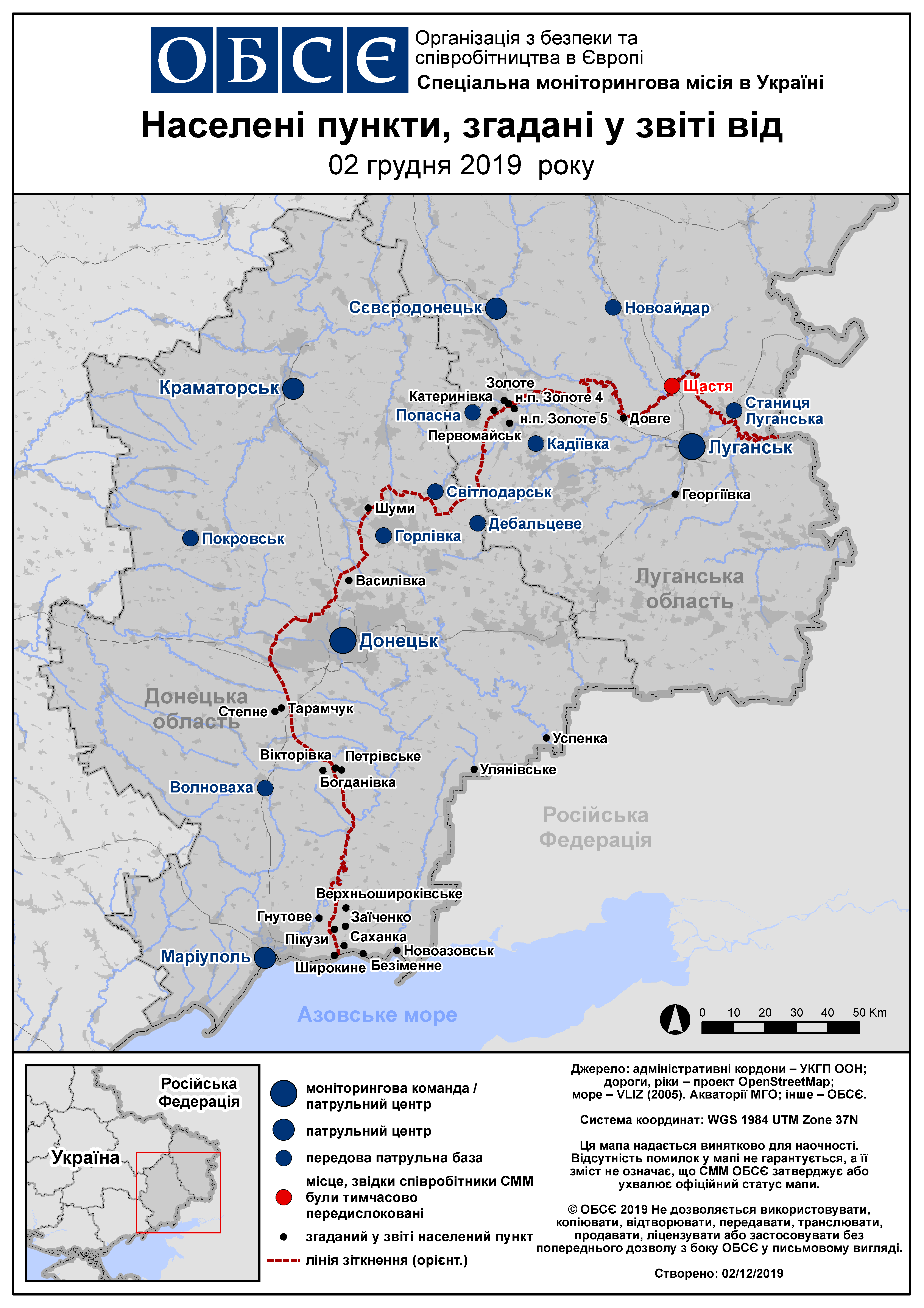 Щоденний звіт № 285/2019, опублікований Спеціальною моніторинговою місією ОБСЄ в Україні (СММ) 2 грудня 2019 року