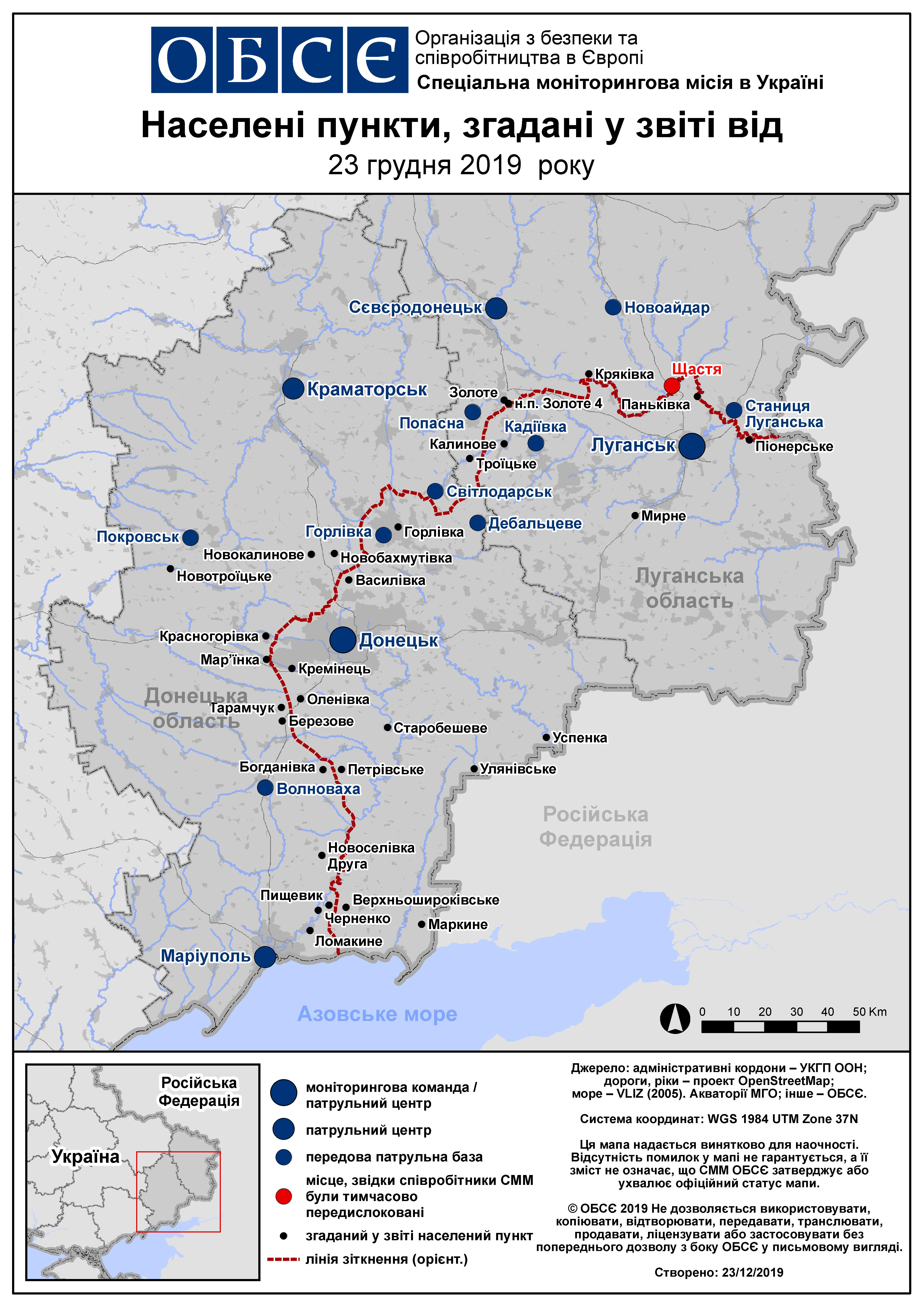 На основі інформації, що надійшла від моніторингових команд станом на 19:30 22 грудня 2019 року (за східноєвропейським часом)