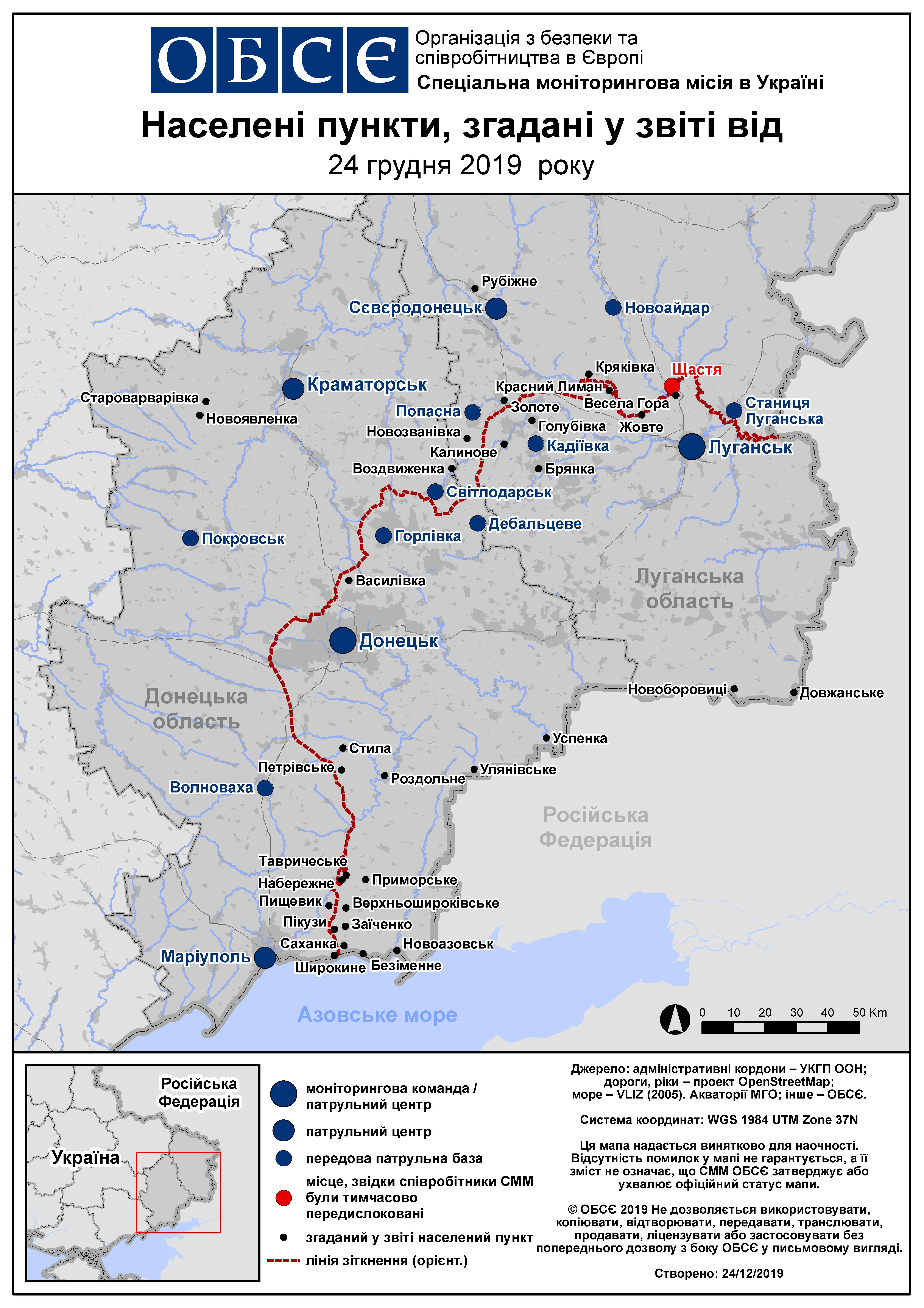 Щоденний звіт № 304/2019, опублікований Спеціальною моніторинговою місією ОБСЄ в Україні (СММ) 24 грудня 2019 року