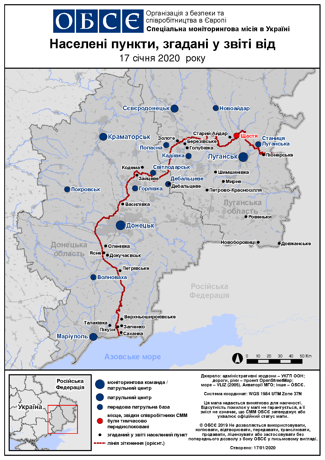 Щоденний звіт № 13/2020, опублікований Спеціальною моніторинговою місією ОБСЄ в Україні (СММ) 17 січня 2020 року