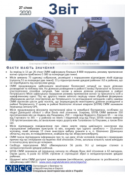 Цей звіт містить загальний огляд діяльності Спеціальної моніторингової місії в Україні, останні новини та події станом на 27 січня 2020 року.