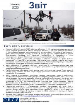Цей звіт містить загальний огляд діяльності Спеціальної моніторингової місії в Україні, останні новини та події станом на 24 лютого 2020 року.