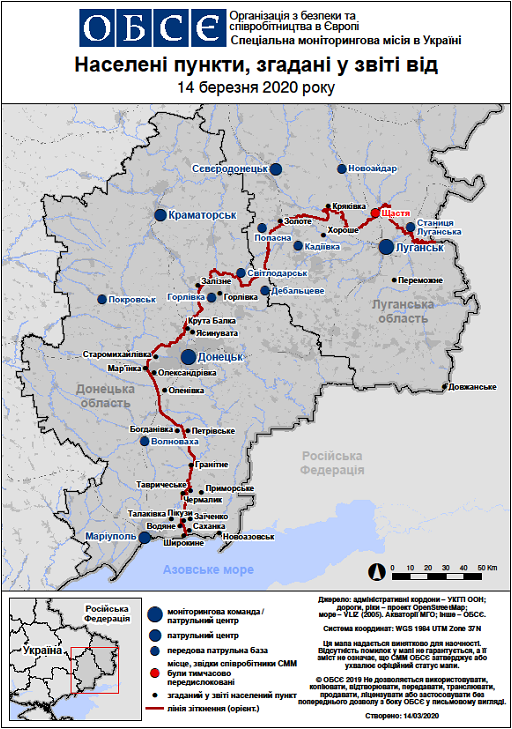 Щоденний звіт № 62/2020, опублікований Спеціальною моніторинговою місією ОБСЄ в Україні (СММ) 14 березня 2020 року
