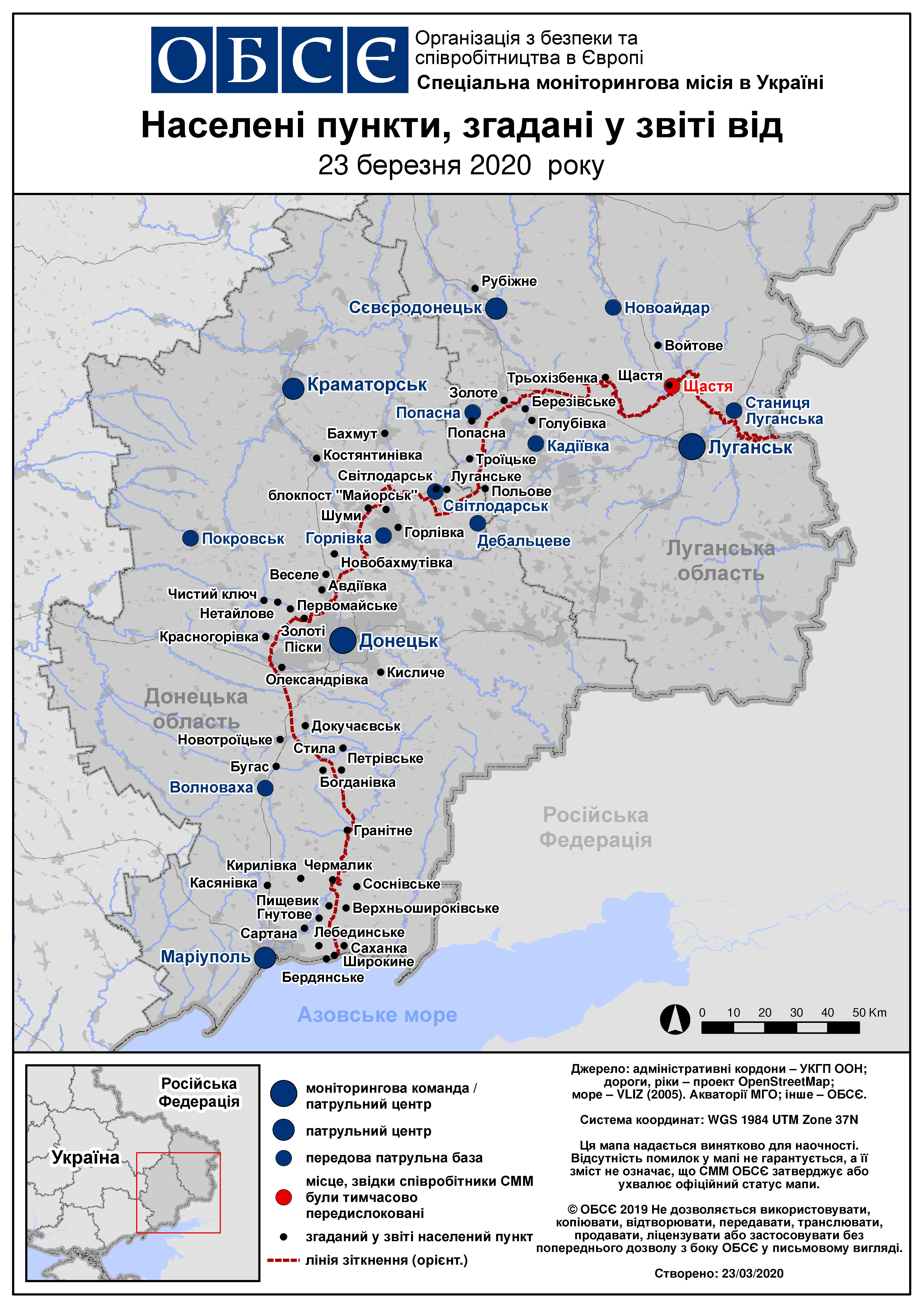 Щоденний звіт № 69/2020, опублікований Спеціальною моніторинговою місією ОБСЄ в Україні (СММ) 23 березня 2020 року