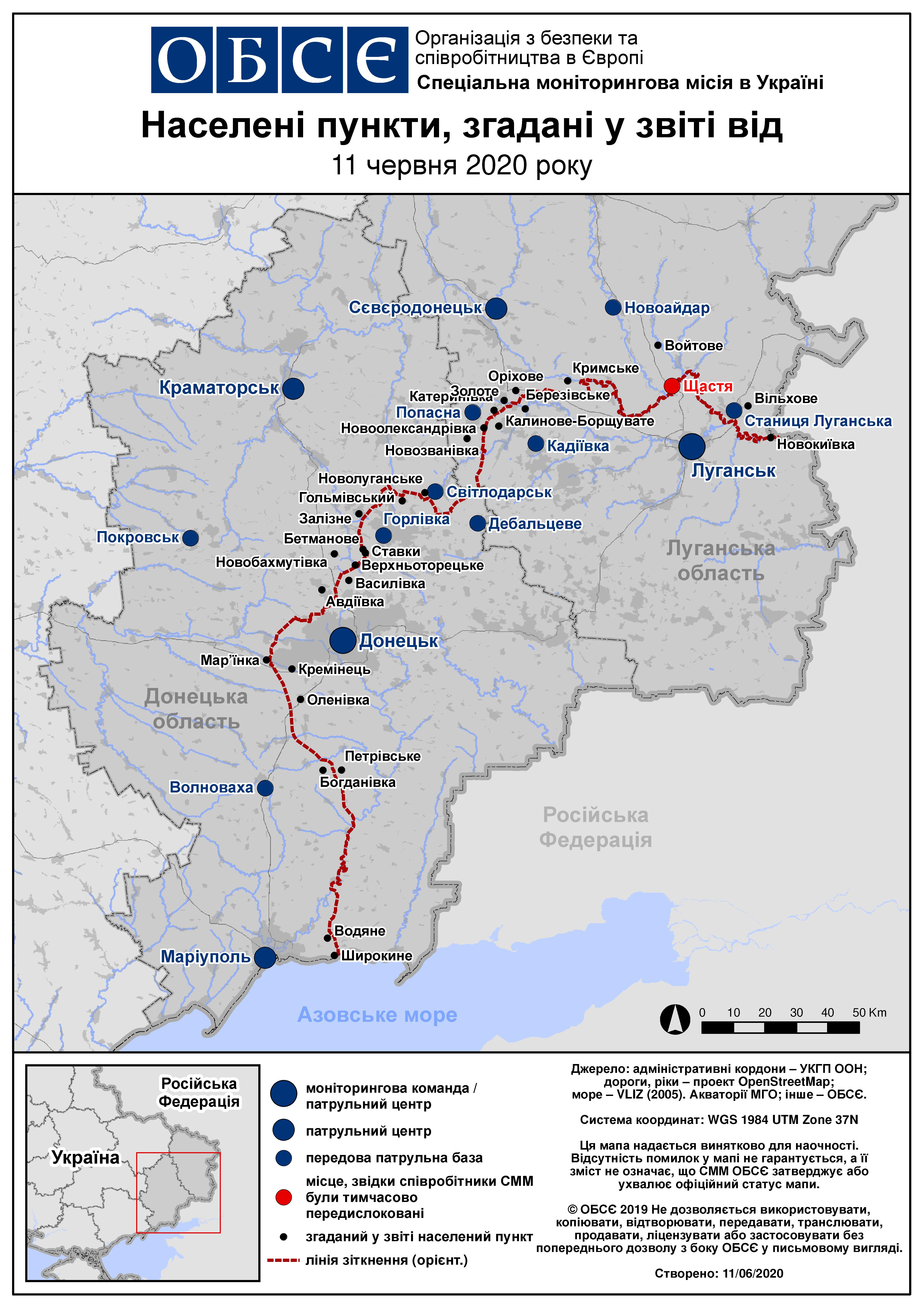 Щоденний звіт № 138/2020, опублікований Спеціальною моніторинговою місією ОБСЄ в Україні (СММ) 11 червня 2020 року