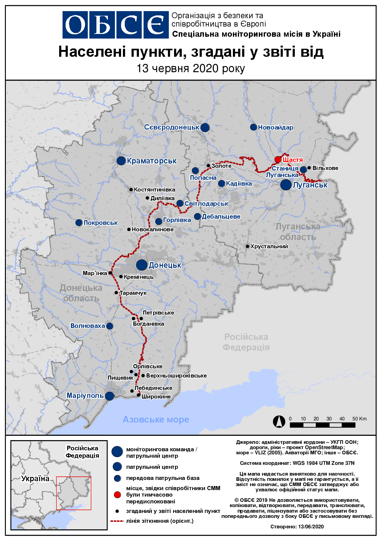 Щоденний звіт № 140/2020, опублікований Спеціальною моніторинговою місією ОБСЄ в Україні (СММ) 13 червня 2020 року