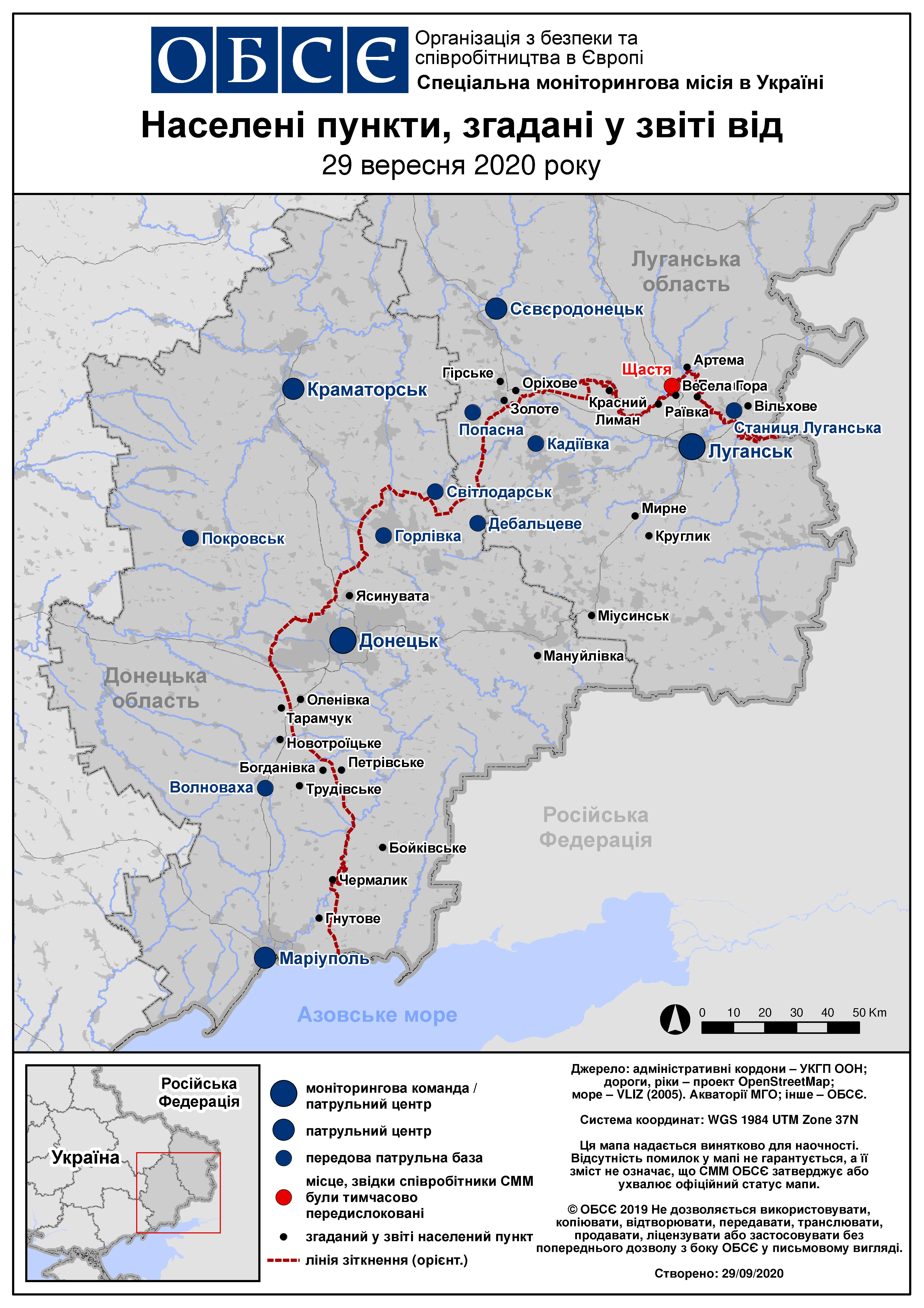 Щоденний звіт № 232/2020, опублікований Спеціальною моніторинговою місією ОБСЄ в Україні (СММ) 29 вересня 2020 року