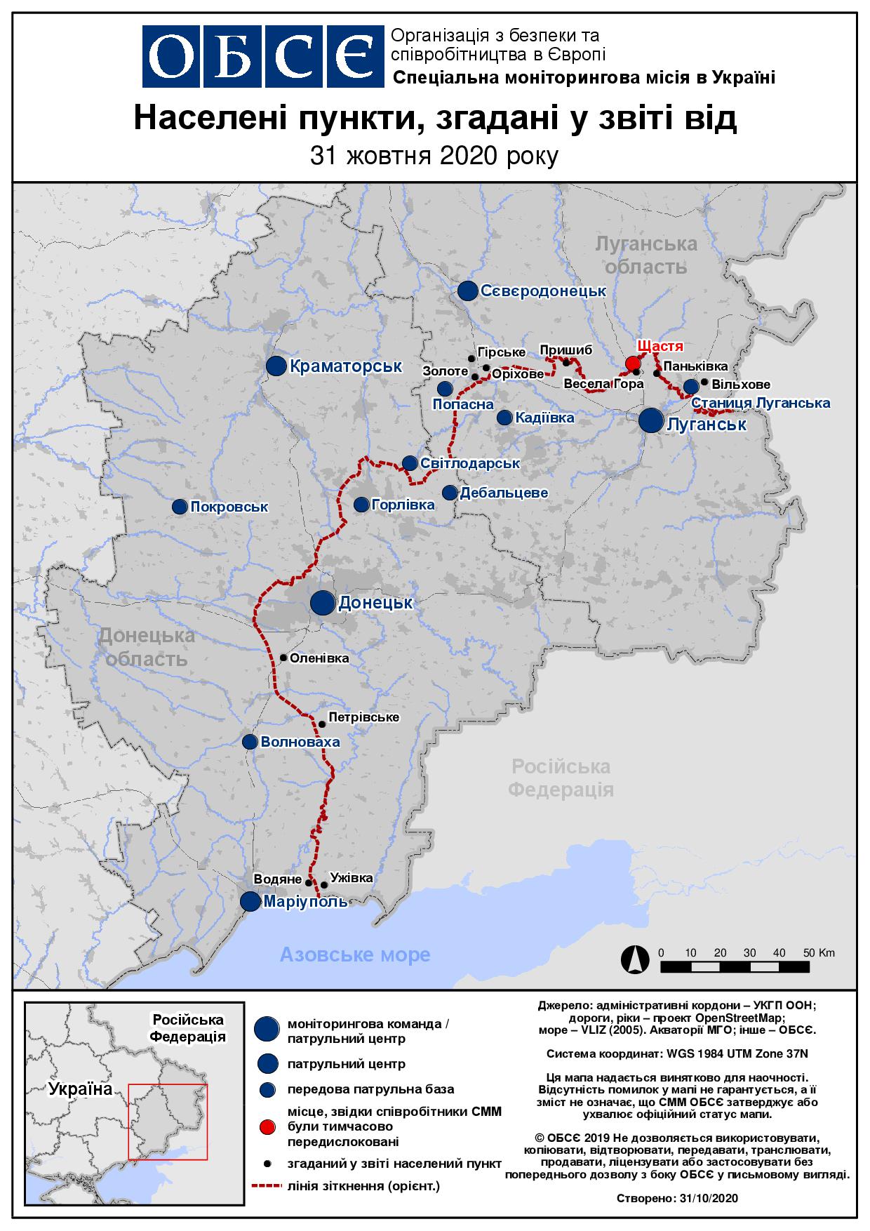 Щоденний звіт № 260/2020, опублікований Спеціальною моніторинговою місією ОБСЄ в Україні (СММ) 31 жовтня 2020 року