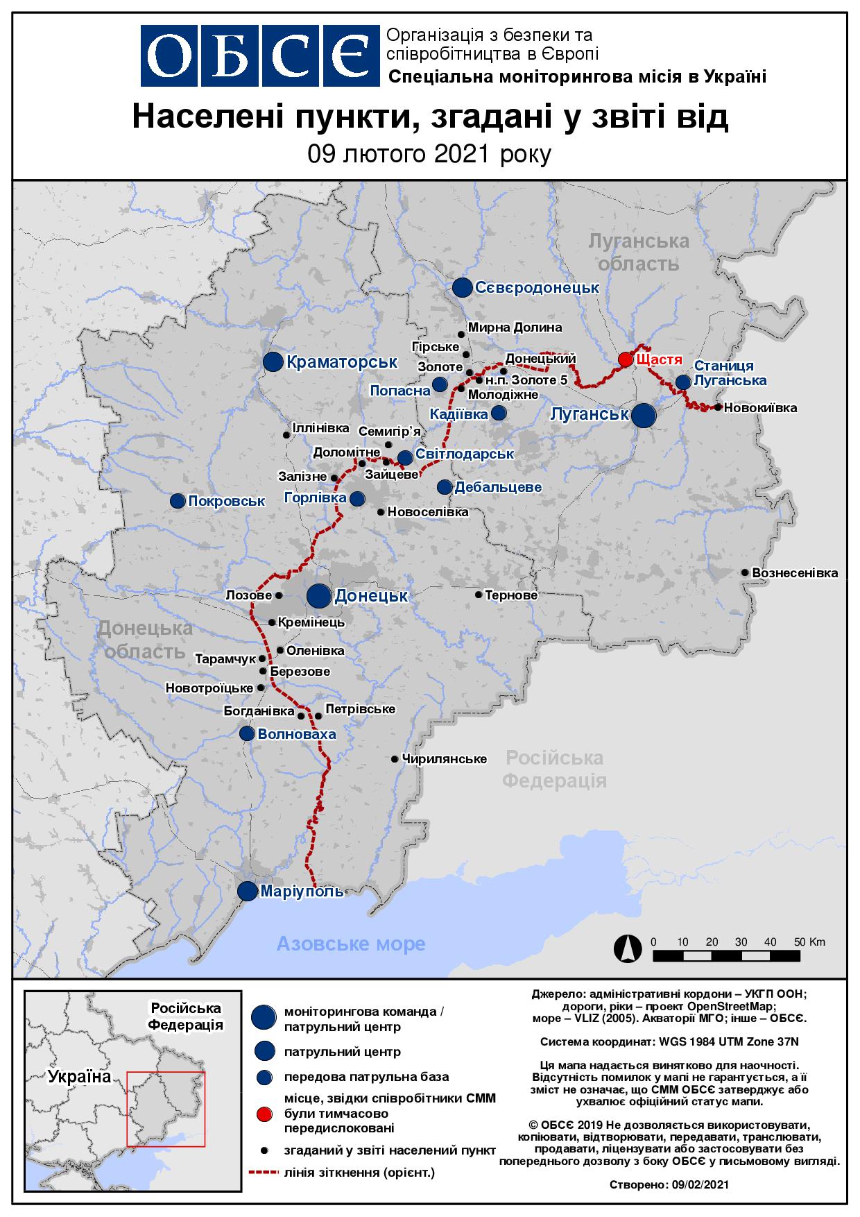 Щоденний звіт № 31/2021, опублікований Спеціальною моніторинговою місією ОБСЄ в Україні (СММ) 9 лютого 2021 року