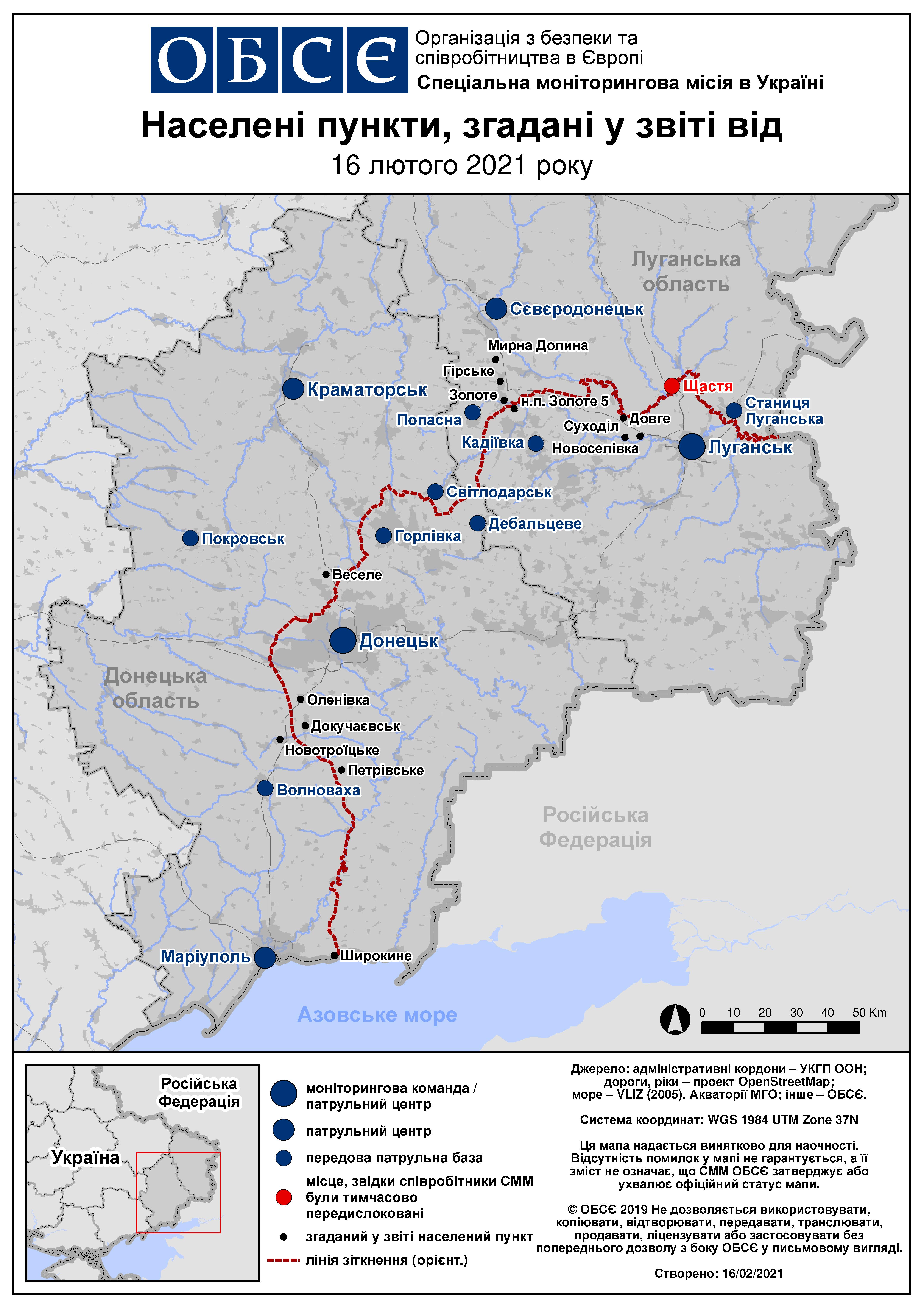 Щоденний звіт № 37/2021, опублікований Спеціальною моніторинговою місією ОБСЄ в Україні (СММ) 16 лютого 2021 року