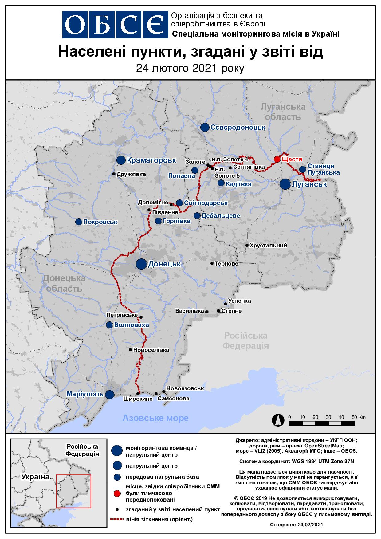Щоденний звіт № 44/2021, опублікований Спеціальною моніторинговою місією ОБСЄ в Україні (СММ) 24 лютого 2021 року