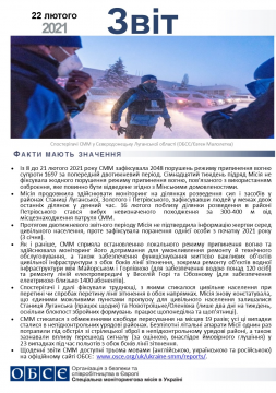Цей звіт містить загальний огляд діяльності Спеціальної моніторингової місії в Україні, останні новини та події станом на 22 лютого 2021 року.