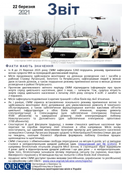 Цей звіт містить загальний огляд діяльності Спеціальної моніторингової місії в Україні, останні новини та події станом на 22 березня 2021 року.