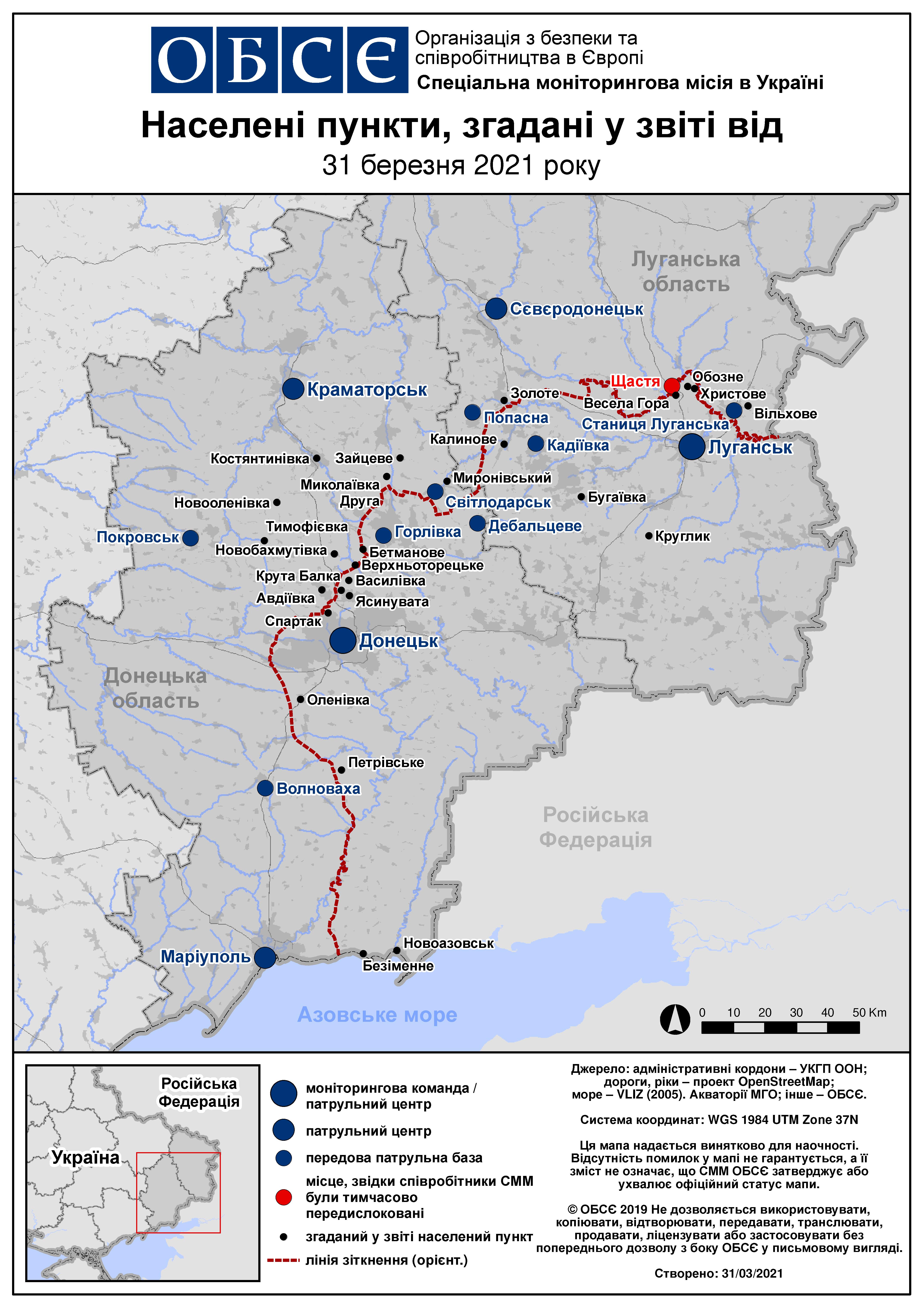 Щоденний звіт № 74/2021, опублікований Спеціальною моніторинговою місією ОБСЄ в Україні (СММ) 31 березня 2021 року