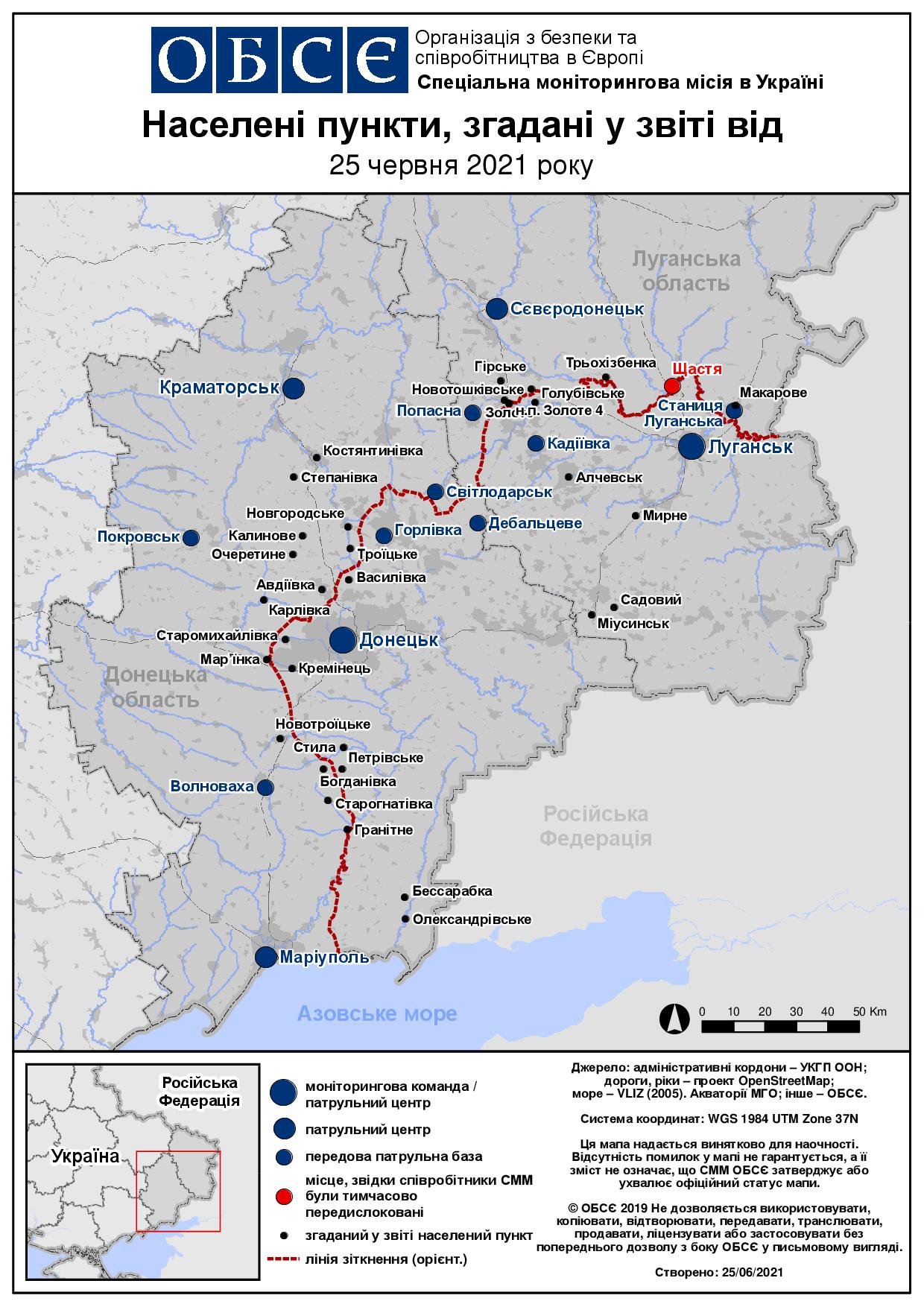 Щоденний звіт № 146/2021, опублікований Спеціальною моніторинговою місією ОБСЄ в Україні (СММ) 25 червня 2021 року