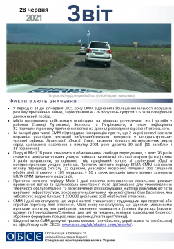 Цей звіт містить загальний огляд діяльності Спеціальної моніторингової місії в Україні, останні новини та події станом на 28 червня 2021 року.